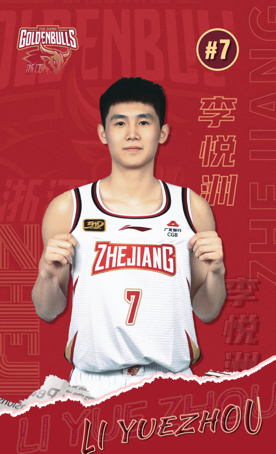 李悦洲,出生于2007年4月9日,身高188cm,体重80kg,司职后卫。浙江稠州青年队出品,浙江湖州少体校输送。